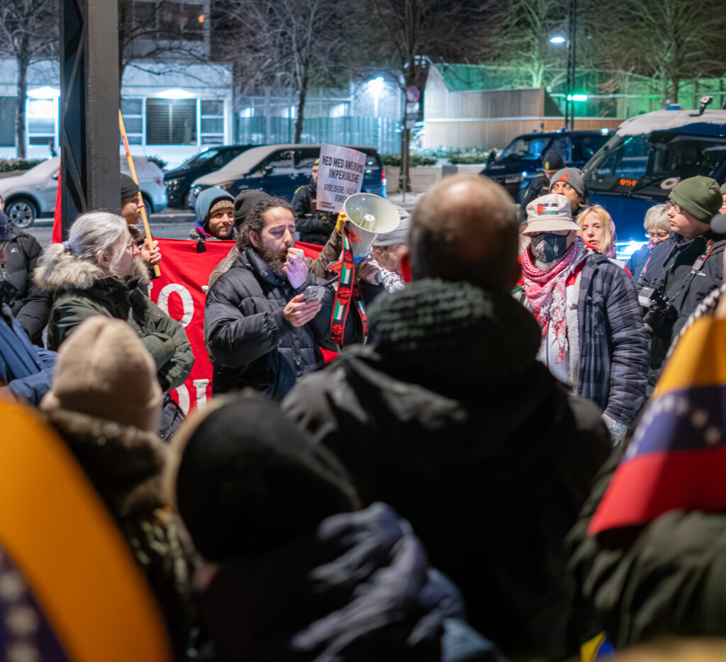 DEMOSTRATION MOD USA’S OVERGREB PÅ VENEZUELA Den 4. januar var hundrede samlet foran den amerikanske ambassade for at protestere mode
