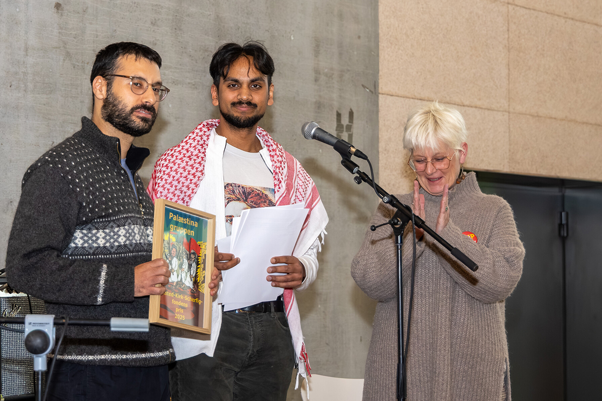 Så blev Gelsted-Kirk-Scherfig-fondens pris 2025 uddelt i søndags. Den ene del af prisen gik til International Forums Palæstinagruppe. Gruppen får prisen for nu igennem flere år været organisator for masser af pro Palæstina aktivitet og været i stand til at fastholde aktiviteten. Efter deres takketale sang Dana Alshihaby nogle Palæstinensiske sange på arabisk, men som gennem hendes sang gik helt ind sjælen på forsamlingen. Den andel af prisen gik til musikgruppen ”Kræet”, som spiller rock, blues m.v. Sangene som de selv laver, er socialrealistiske og bliver fremført på dansk. Sangeren Tania synger med hele sin sjæl, lidt alla Janis Joplin, men med sin helt egen stil. Uddelingen som fandt sted hos 3F København sluttede af med en lille koncert med ”Kræet”. HUSK at klikke på billederne, så de ses i hel størrelse. Læs mere om prisen, Palæstinagruppen og Kræet her, samt i Arbejderen. https://da.wikipedia.org/wiki/Gelsted-Kirk-Scherfig-Prisen https://internationaltforum.dk/.../internationalt-forum.../ https://www.facebook.com/kraeet.dk